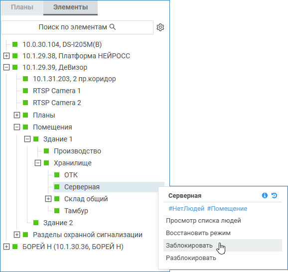 С версии 20.7 АРМ НЕЙРОСС Центр добавлена возможность просмотра списка событий за последние 24 часа от любого элемента системы. Ранее была возможность перехода к списку событий только из карточки события. Сейчас доступ к списку реализован как из окна команд, так и из списка элементов на вкладке Элементы.