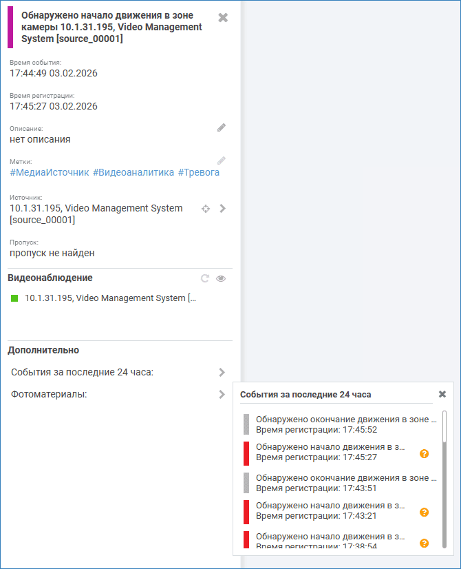 С версии 20.43 Платформы НЕЙРОСС для добавления метки в фильтр Системного журнала достаточно просто кликнуть по соответствующей метке произвольного события. С версии 20.45 добавлен поиск записей по определенному владельцу или пропуску: можно отслеживать изменения данных операторами Бюро пропусков. С версии 20.46 добавлена возможность отслеживания подключений к медиаисточнику по IP-адресу компьютера-клиента.
