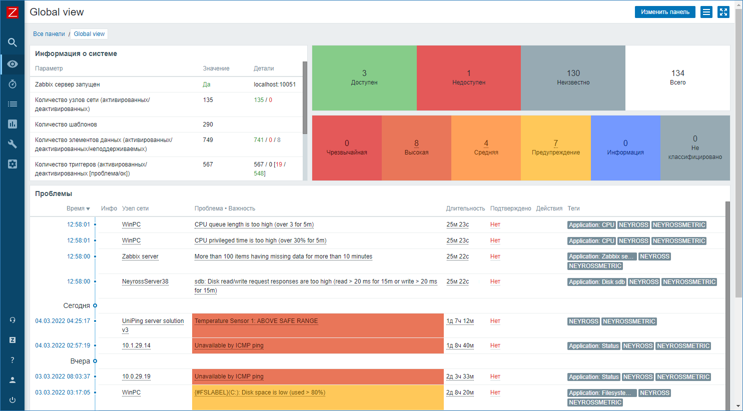 Вы можете настроить формулировки событий и данных узлов Zabbix, отображаемых в АРМ НЕЙРОСС Центр.