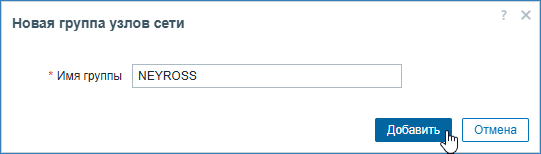 - Установите флаг в поле Группы узлов сети (Host groups). Выберите Добавить (add). Введите имя группы узлов — NEYROSS. Нажмите на кнопку Обновить (Update).