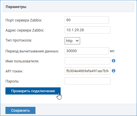 С версии 20.25 Платформа НЕЙРОСС обеспечивает взаимодействие с сервером Zabbix версии 7.0 и возможность выбора в качестве метода авторизации API-токена. Также предусмотрен механизм проверки наличия связи с сервером.