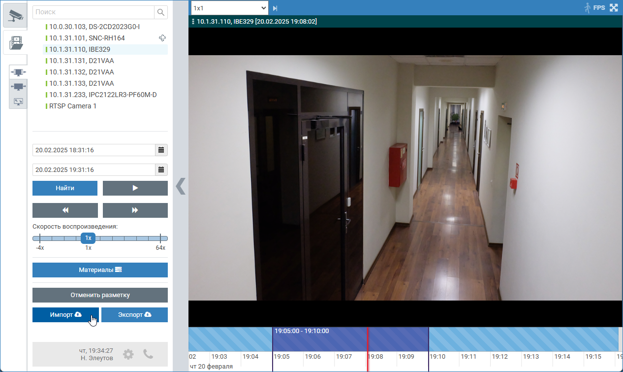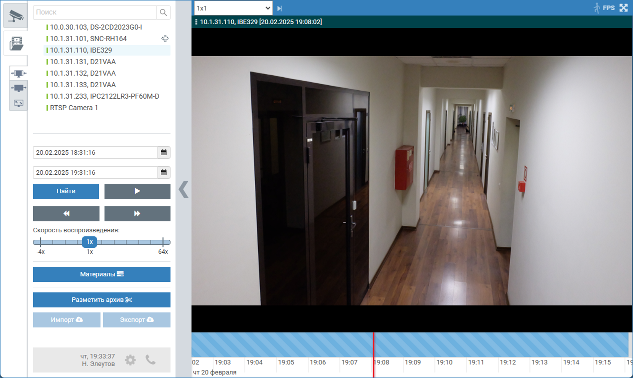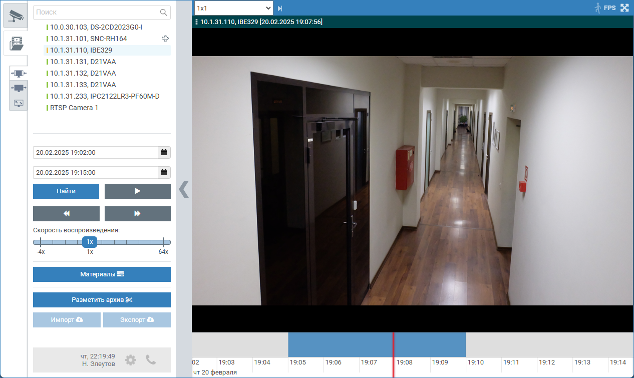 В АРМ НЕЙРОСС Видео перейдите в режим просмотра видеоархива, выберите требуемую камеру.