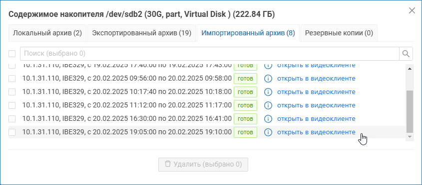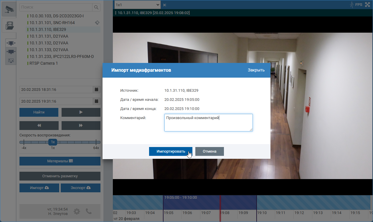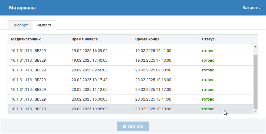 Импорт видеоархива — это процедура сохранения видеоматериалов с «внешнего» по отношению к узлу, с которого выполняется импорт, видеорегистратора.