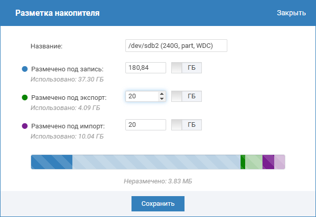 Для создания задачи на импорт, необходимо предварительно убедиться, что в системе есть хотя бы один накопитель с выделенным под импорт местом.
