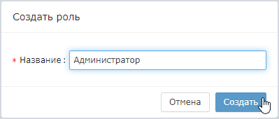 В отобразившемся окне введите название роли, нажмите на кнопку Создать.