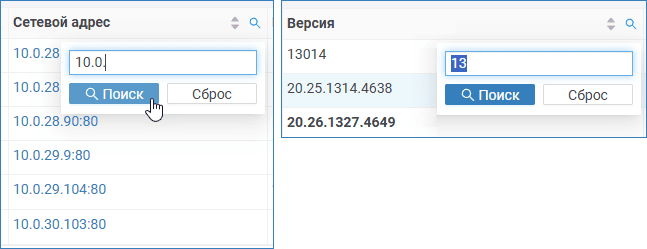 Мы добавили возможность сортировки узлов по текущему состоянию, а также по имени узла, его IP-адресу, типу или версии программных средств. Также добавлена возможность текстовой фильтрации по вхождению данных. Также расширены инструменты выбора группы узлов.