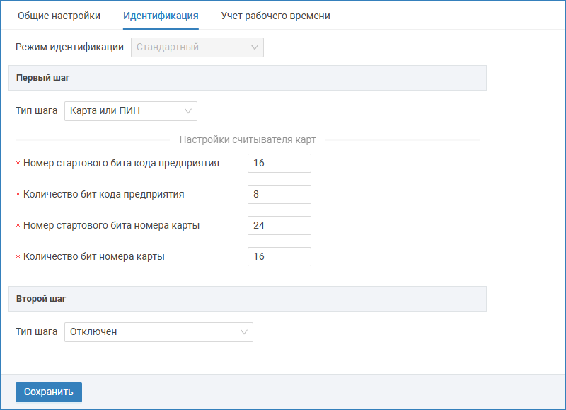 Настройка режима идентификации на вкладке Идентификация.