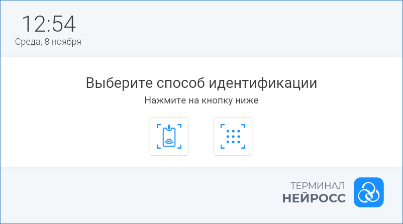 Для перехода к выбору другого способа идентификации нажмите на кнопку Назад. Если в настройках Терминала другие способы идентификации не заданы, кнопка не отображается.