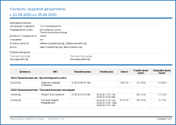 Журнал нарушений трудовой дисциплины. Строится на основе графиков работы. Может формироваться с использованием фильтра по организациям/подразделениям/должностям/пропускам, либо по всем событиям доступа в системе.