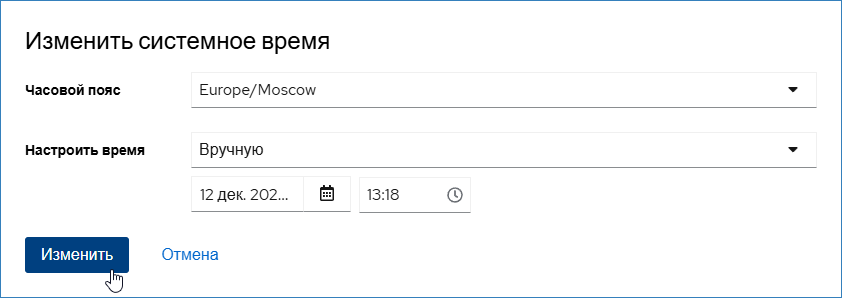 Настройка времени осуществляется в разделе Обзор в блоке Настройка. В разделе Обзор в блоке Настройка в поле Системное время щелкните левой клавишей мыши по текущему значению, чтобы изменить параметры.