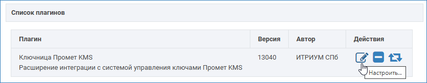 Проверьте наличие установленного плагина «Ключница Промет KMS» и перейдите к настройкам плагина.