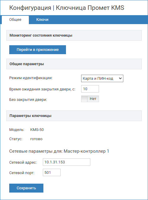 | Сетевой адрес | ip-адрес | IP-адрес блока управления KMS. Значение поля должно быть идентичным настройкам блока управления. Подробнее в статье Как сменить ip-адрес/порт? | |