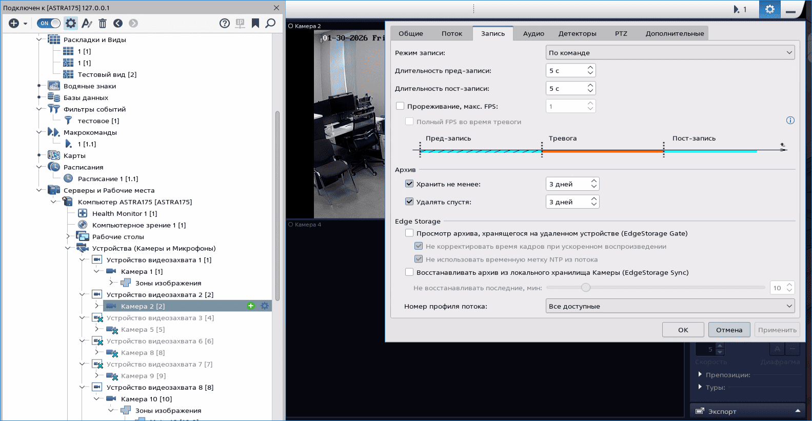 | Мониторинг состояния медиаисточников | Обеспечивается контроль наличия связи, статус записи и статус охраны: