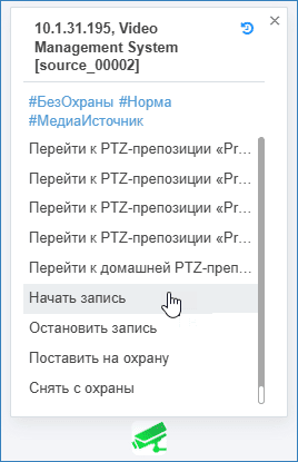 После установки плагина станут доступны команды управления камерами видеосервера SecurOS.