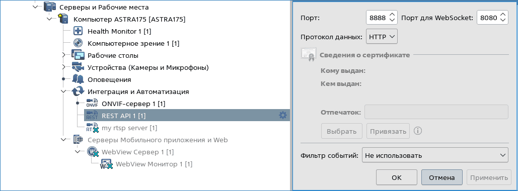В разделе Интеграция и Автоматизация настройте REST API-сервер: