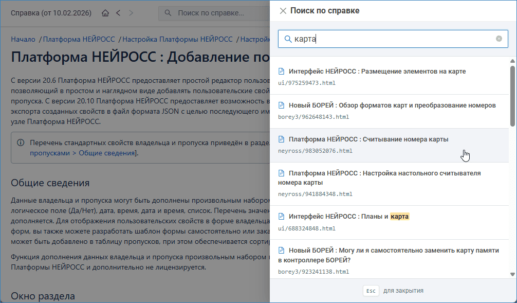 С версии 20.47 Платформы НЕЙРОСС / ДеВизор доступна встроенная справочная документация.
