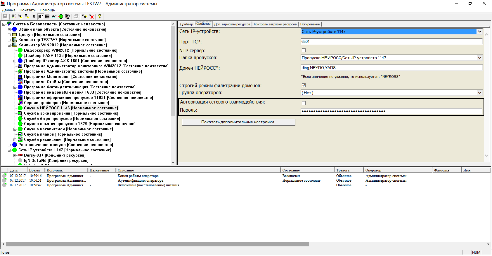 Программа Администратор системы является основной программой для администратора системы безопасности объекта.