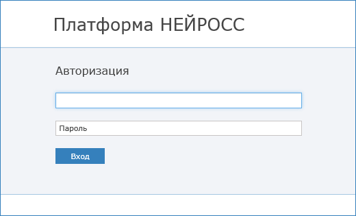 Запуск осуществляется с рабочего места оператора с помощью ярлыка приложения. Для запуска приложения на рабочем месте должен быть установлен комплект приложений АРМ НЕЙРОСС, компьютер на рабочем месте должен быть подключен по сети к работающему серверу Платформы НЕЙРОСС, а оператору должна быть выдана соответствующая учётная запись. В процессе установки АРМ НЕЙРОСС, в меню приложений создаётся папка НЕЙРОСС, в которой создаются ярлыки всех пользовательских приложений НЕЙРОСС. Откройте меню Пуск. Найдите папку НЕЙРОСС. Выберите ярлык необходимого пользовательского приложения и запустите его нажатием левой кнопки мыши. На основном экране приложения отобразится окно аутентификации. Программные средства Платформы НЕЙРОСС непосредственно в период запуска проверяют соответствие версии Платформы НЕЙРОСС и версии АРМ, если версии не совпадают, вы увидите сообщение о необходимости загрузить и установить новую версию. Полный перечень ошибок запуска и рекомендации по их устранению приведены в разделе [Ошибки запуска АРМ НЕЙРОСС]. Введите учётные данные, предоставленные Вам администратором системы: