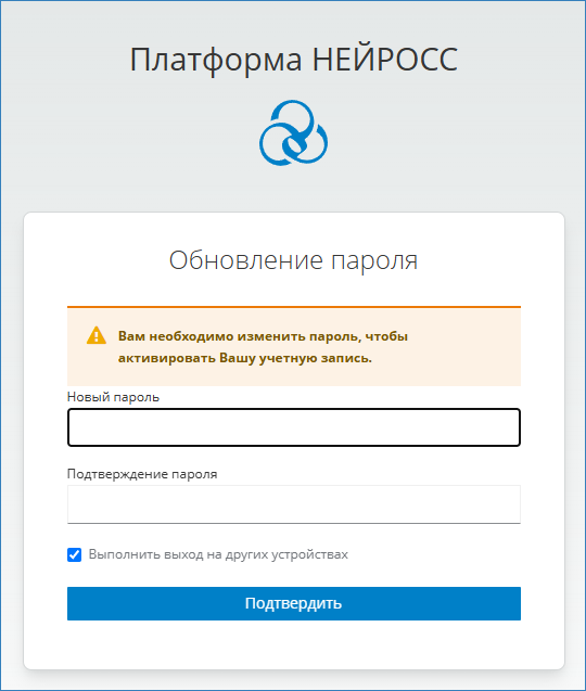 Платформа НЕЙРОСС контейнеризированной версии принимает более строгие политики безопасности по управлению пользователями. В частности, при переходе с нативной версии Платформы НЕЙРОСС на контейнеризированную с помощью процедуры миграции проводится ревизия всех пользователей предыдущей версии и отображается требование смены пароля.