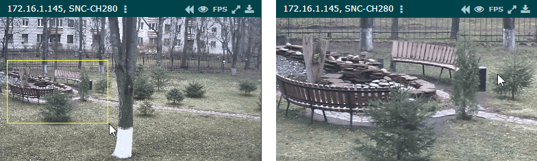 Окно видеонаблюдения позволяет использовать цифровое увеличение любой области видеонаблюдения.