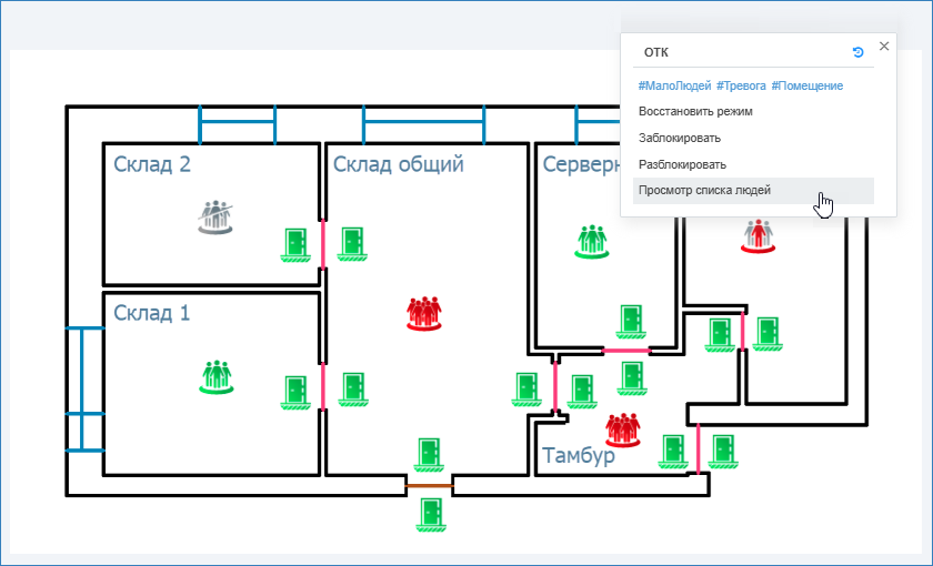 Сервис автоматизации позволяет контролировать наличие людей в помещение, время посещения которого ограничено их уровнем доступа.