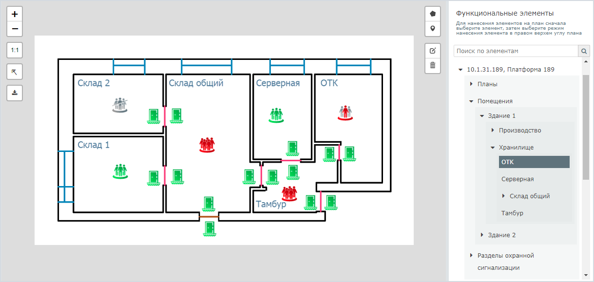 Элементам Помещение соответствует метка Room. Средствами раздела Элементы вы можете добавлять собственные метки элементам и выдавать разрешение на управление даже на один конкретный элемент плана.