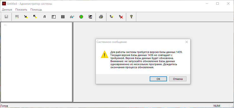 - Выполните обновление базы данных. Для этого в окне запроса на обновление нажмите на кнопку ОК.