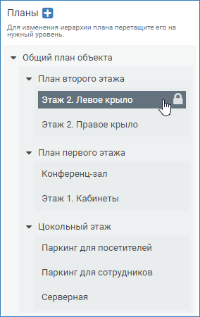 Перейдите в раздел Ситуационный центр и убедитесь, что планы с локального узла отобразились в дереве планов [Планы и карта].