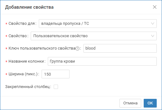 Пример добавления пользовательского свойства с ключом bloodРедактирование параметров колонки