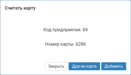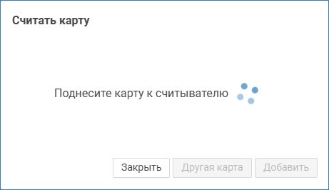 Если необходимо заменить карту, нажмите на кнопку Другая карта и поднесите её к считывателю. Если карта верная, нажмите на кнопку Добавить.