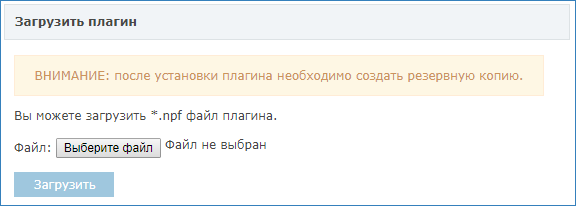 2. В разделе Конфигурация узлов — Плагины и скрипты — блок Загрузить плагин укажите путь к файлу плагина формате NPF и нажмите Загрузить.
