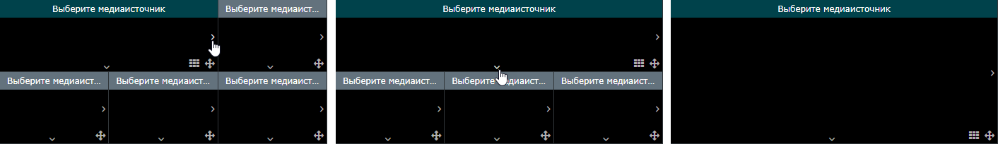 Оператор может выбрать требуемую сетку мультиэкрана (первая цифра — число строк, вторая цифра — число столцов), объединить ячейки и задать для каждой ячейки медиаисточник.
