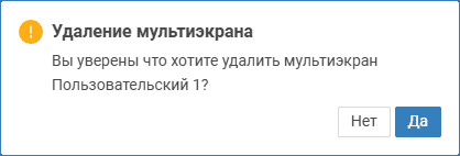 Чтобы удалить мультиэкран, выберите его в списке мультиэкранов и нажмите на кнопку Удалить мультиэкран. В отобразившемся окне подтверждения нажмите на кнопку Да.