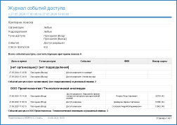 Универсальный инструмент построения журнала событий доступа по организациям/подразделениям, с возможностью фильтрации по точкам доступа и типам событий.