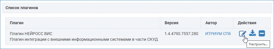 Сервис работы с ВИС поставляется в виде плагина интеграции — независимого программный модуля, предназначенного для расширения функционала Платформы НЕЙРОСС. Установка плагина является стандартной процедурой и не зависит от предоставляемых функций. Перечень разработанных плагинов и порядок их установки приведён в разделе [Плагины].