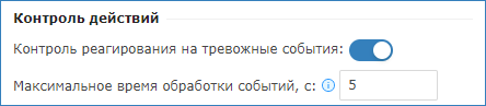 - В поле Контроль действий установите переключатель Контроль реагирования на тревожные события в положение