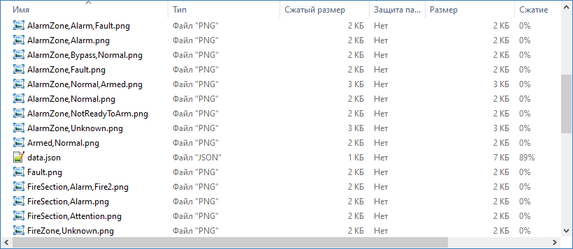 Архив содержит файлы изображений иконок в формате PNG, набор меток указан в имени файла, и файл конфигурации data.json.
