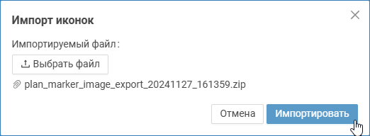 С версии 20.16 Платформы НЕЙРОСС реализована функция экспорта настроек данной вкладки для последующего импорта на другом узле Платформа НЕЙРОСС. Также вы можете использовать возможность экспорта для получения изображения всех иконок с целью их дальнейшего использования для новых комбинаций меток.
