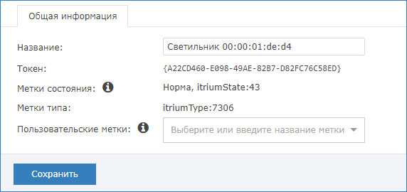 Текущий полный набор меток элемента приведён на вкладке Элементы данного раздела или в окне команд элемента в АРМ НЕЙРОСС Центр [Управление элементами].