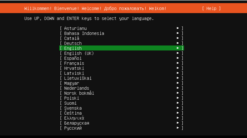 - Выберите язык интерфейса установки English (US). Для перемещения используйте клавишу TAB. Выберите Done для перехода к следующему этапу.