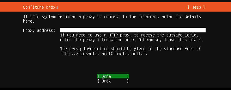 - Не настраивайте http-proxy (оставьте поле пустым). Выберите Done. Нажмите на клавишу Enter.