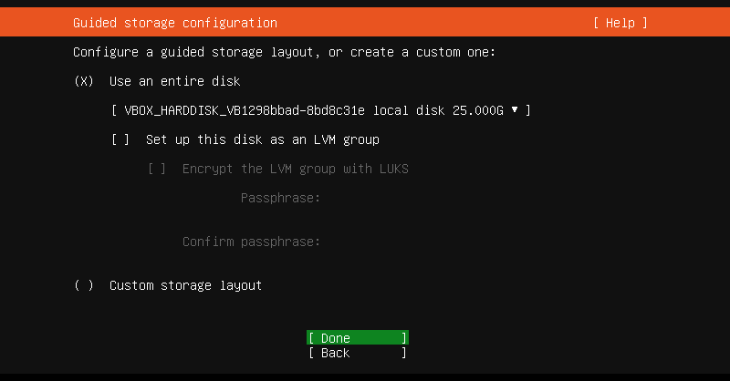 С помощью клавиши Space (Пробел) выберите Use an entire disk (Использовать весь диск).