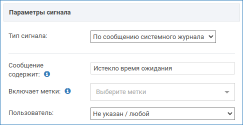 | Включает метки | Выберите из раскрывающегося списка требуемую метку события, если в системном журнале регистрируются события с одинаковым фрагментом текста, но разными метками, и вас интересуют только один тип событий. |