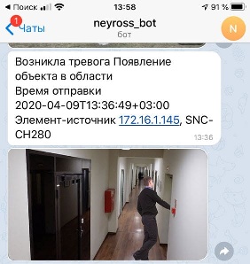 Пример Telegram-уведомления с кадром по тревоге видеоаналитики
