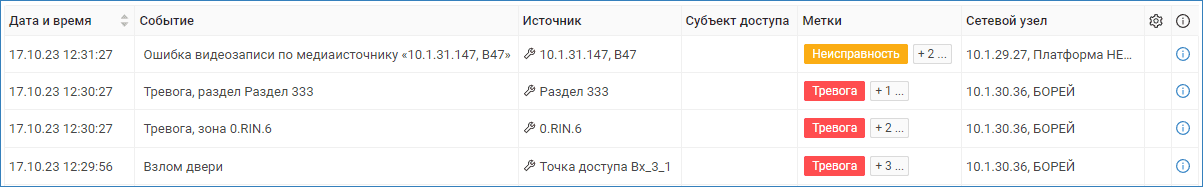 В версии 20,6 Платформы НЕЙРОСС мы полностью переработали интерфейс приложения журнала событий, добавив возможность вывода событий всех узлов сети с функцией фильтрации по домену и по меткам (по принципу включает/исключает), также остались доступны фильтры по названию события, источнику, и выбранным пропускам. Теперь это по настоящему мощный инструмент просмотра событий узлов НЕЙРОСС. Также вы можете отслеживать события ONVIF ip-видеокамер, в том числе, — события встроенной в камеру видеоаналитики. Любую выборку событий вы можете экспортировать в файл формата CSV и превратить в полноценный отчёт, добавив оформление в выбранном вами редакторе.