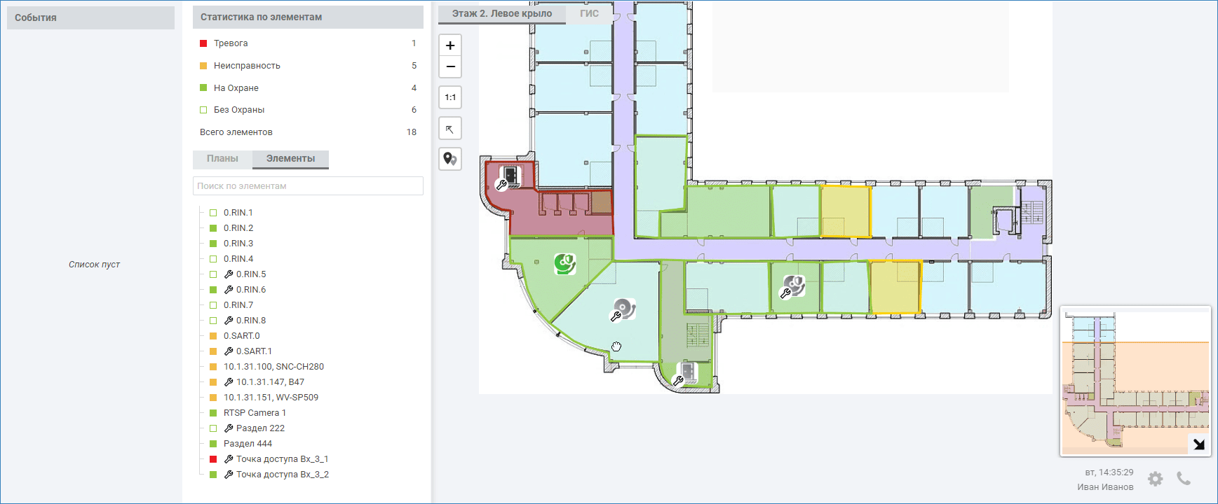 С версии 20.7 АРМ НЕЙРОСС Центр добавлена возможность просмотра списка событий за последние 24 часа от любого элемента системы. Ранее была возможность перехода к списку событий только из карточки события. Сейчас доступ к списку реализован как из окна команд, так и из списка элементов на вкладке Элементы.