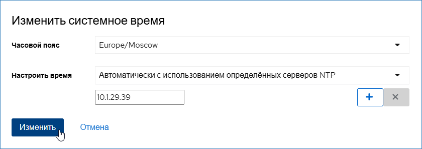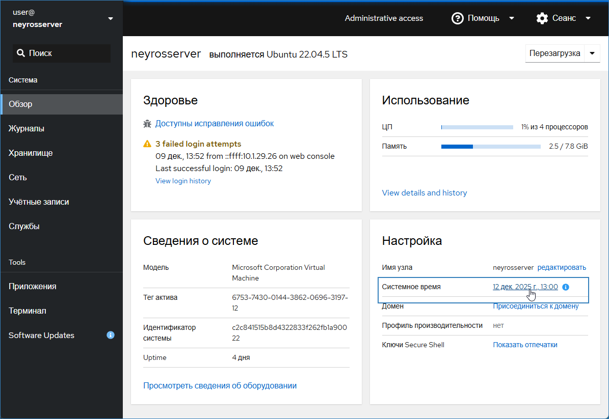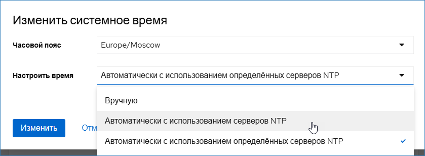 Страница: Настройка времени сервера | Cockpit